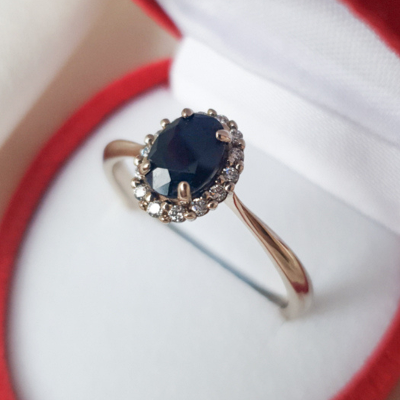 Kullaproov: 585 Kivi: safiir+laboris kasvatatud teemandid